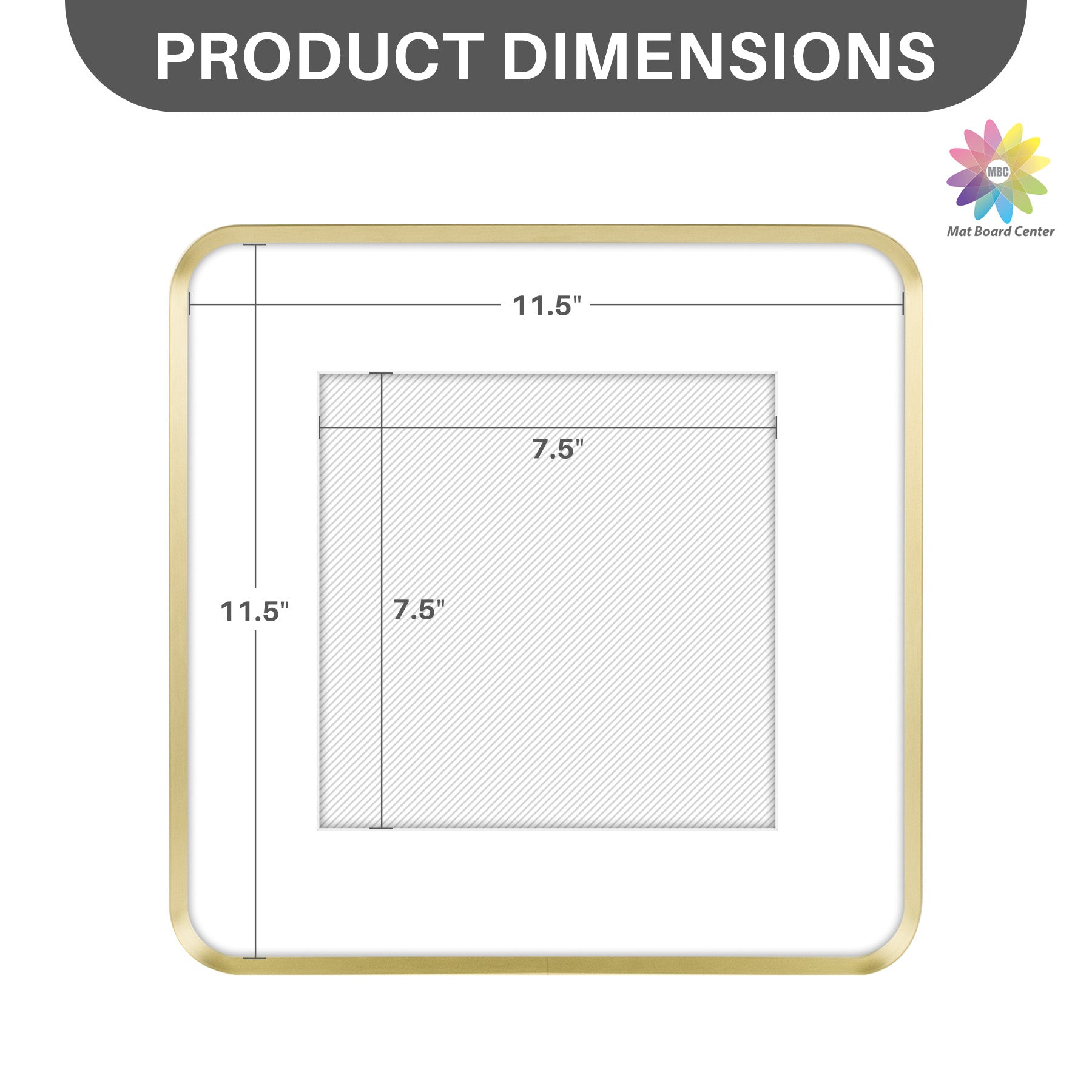 12x12 Round Corner Aluminum Picture Frame with White Mat for 8x8 Picture(6 Pcs Per Box) Gold