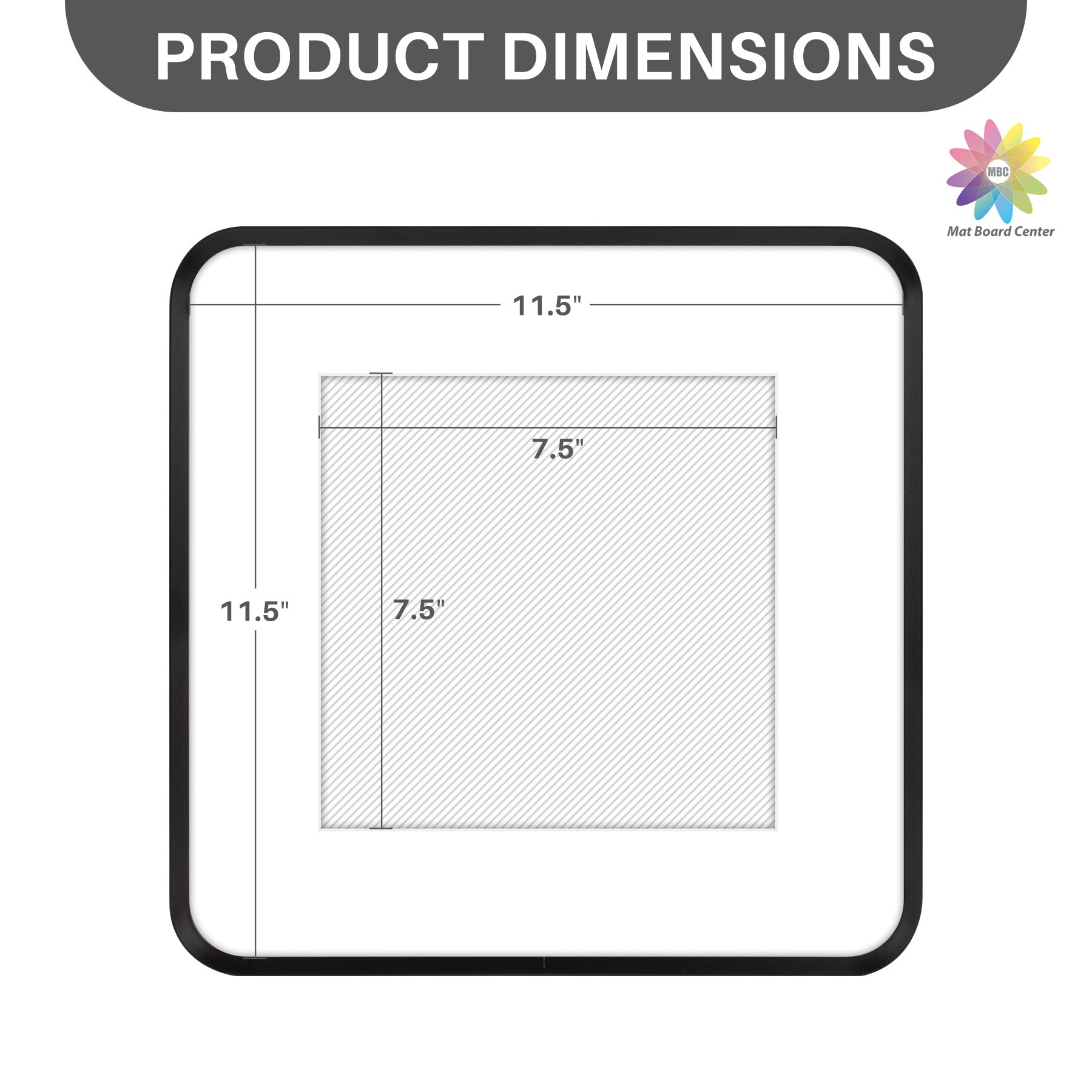 12x12 Round Corner Aluminum Picture Frame with White Mat for 8x8 Picture(6 Pcs Per Box) Black