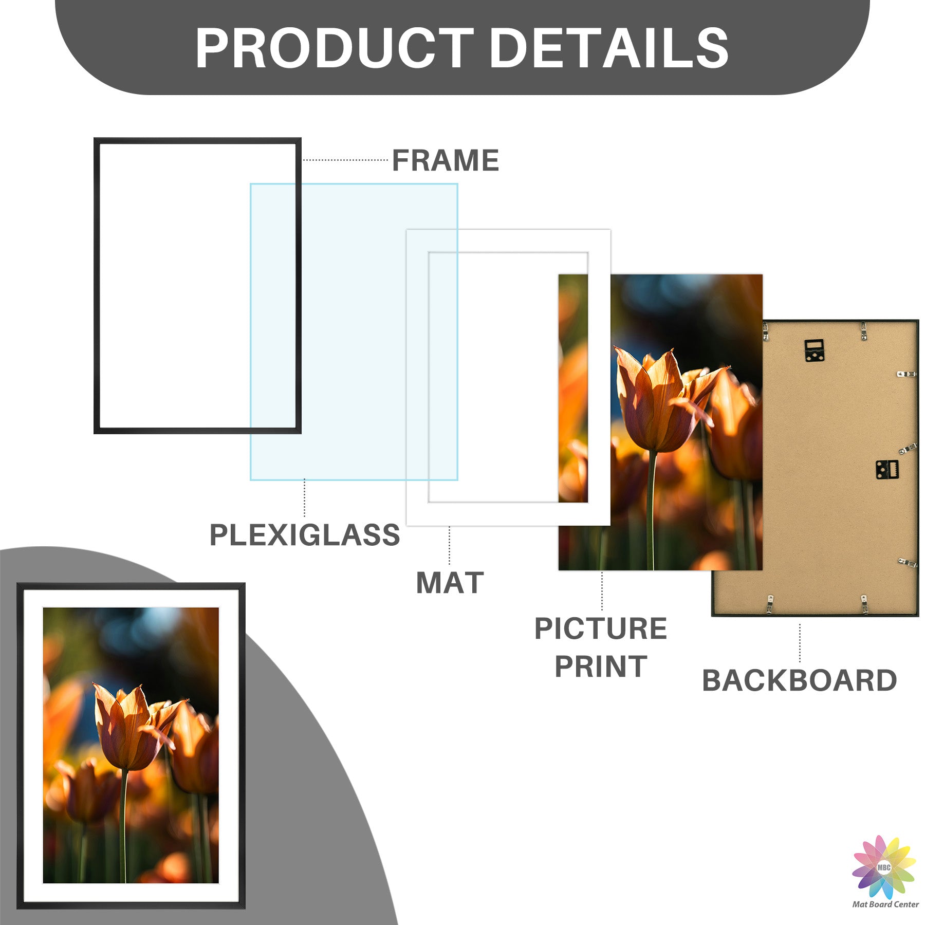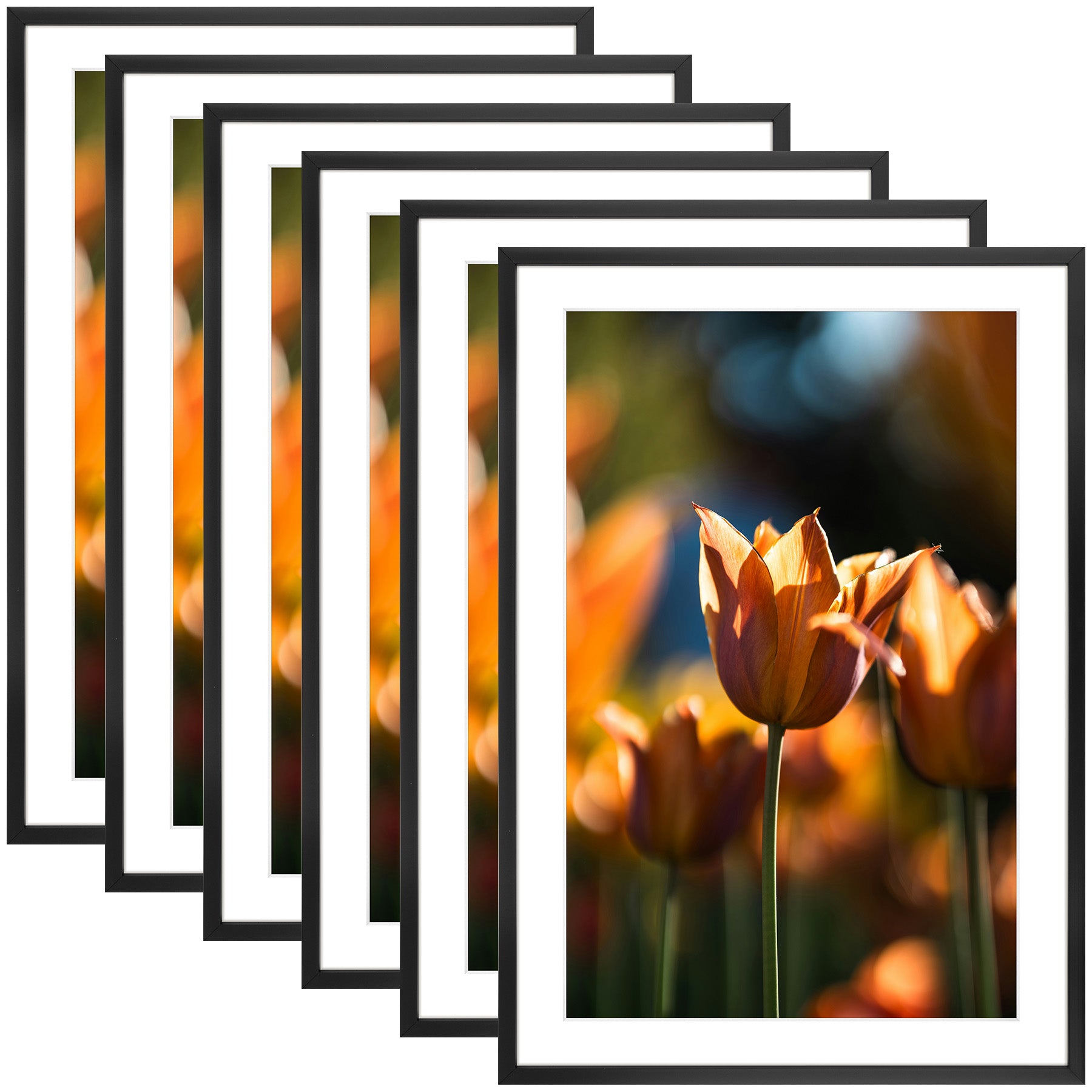 13x19 Picture Frame For 11x17 Photo With White Mat and Plexiglass (6 Pcs per Box) Black