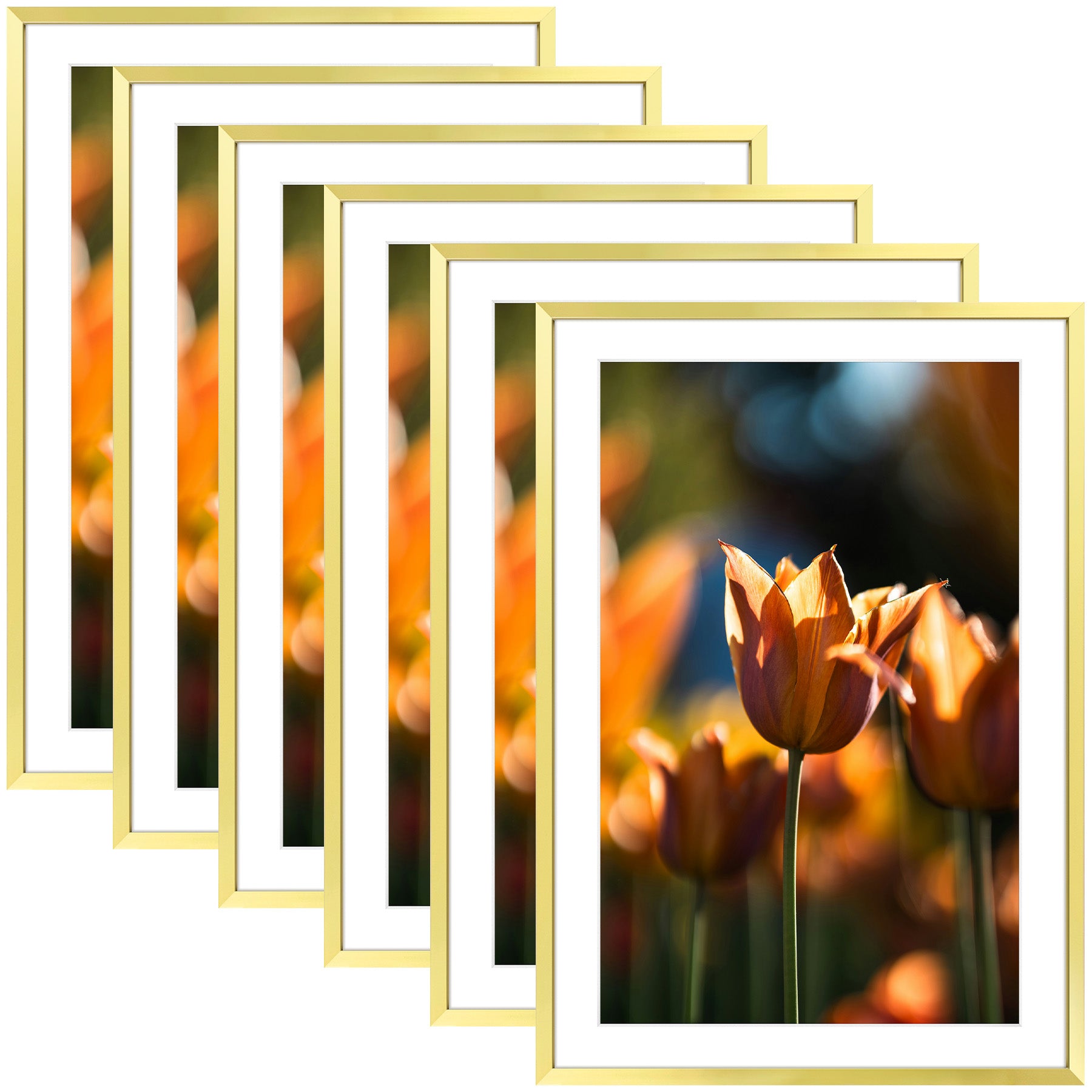 13x19 Picture Frame For 11x17 Photo With White Mat and Plexiglass (6 Pcs per Box) Gold