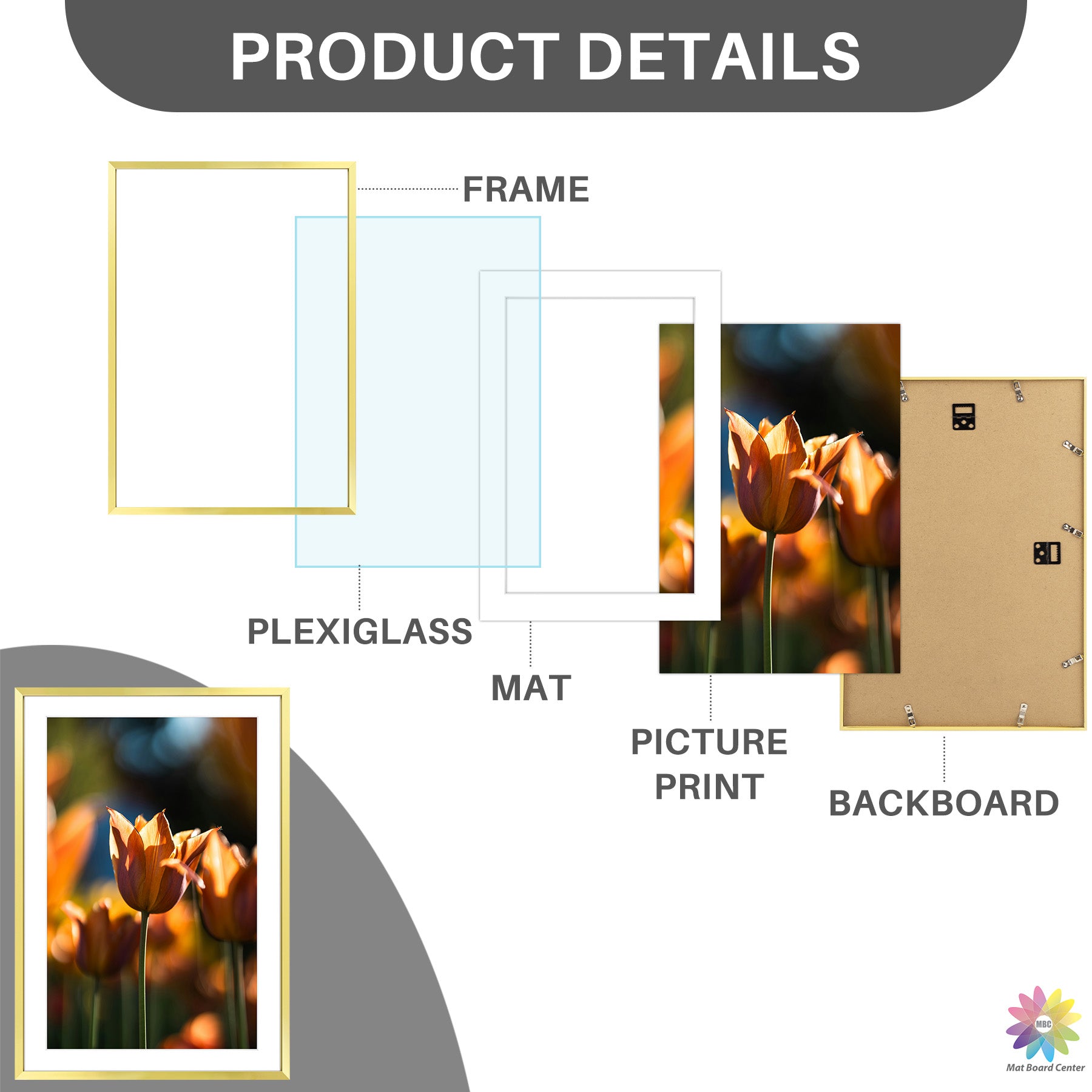 13x19 Picture Frame For 11x17 Photo With White Mat and Plexiglass (6 Pcs per Box)