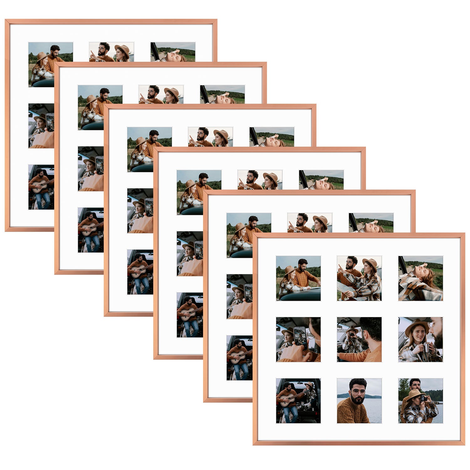 16x16 Aluminum Collage Picture Frame for Nine 4x4 Photos (6 Pcs per Box) Rose Gold