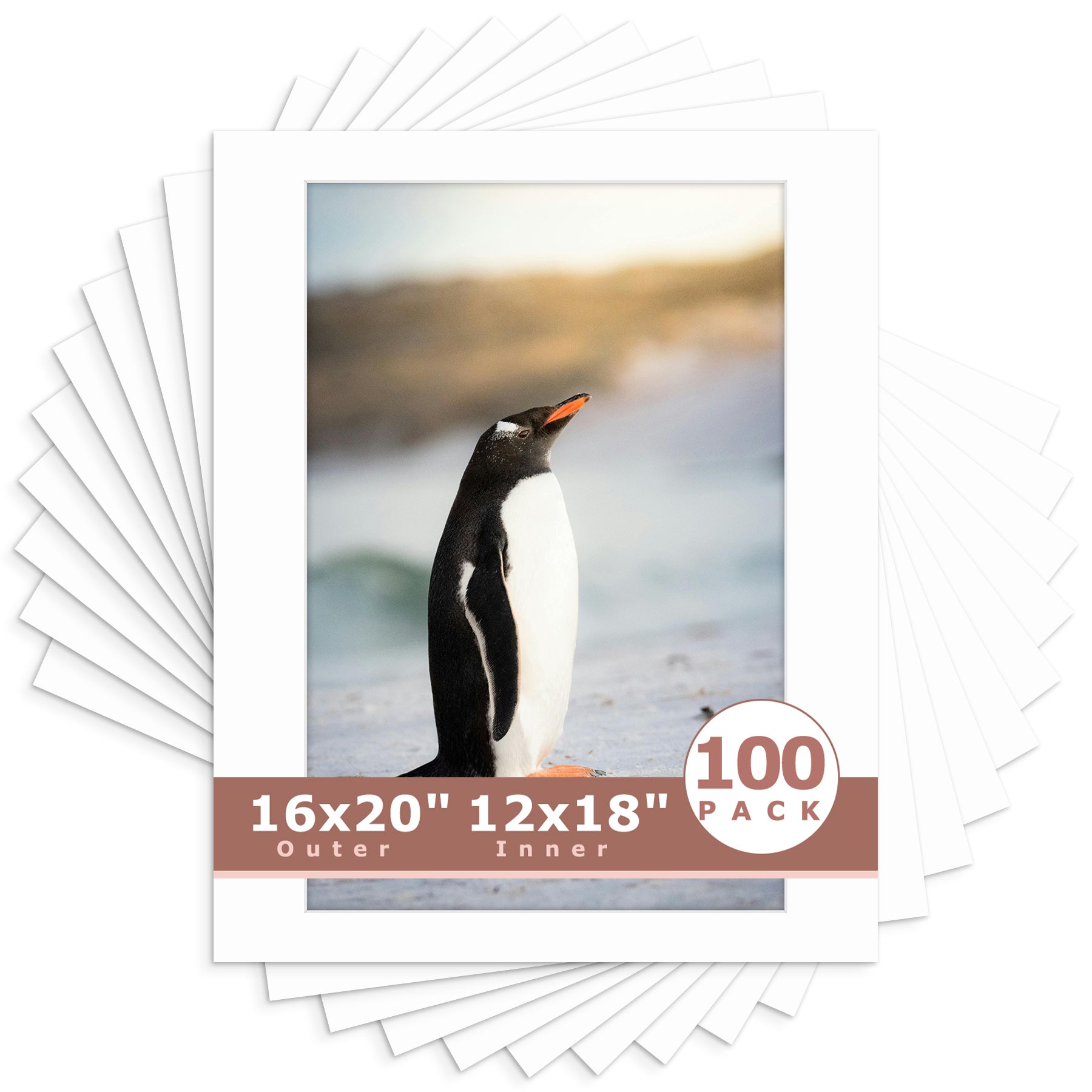 16x20 Whitecore Economy Pre-Cut Mat-Pack of 100 12x18 (exact opening 11.5x17.5) N501 White
