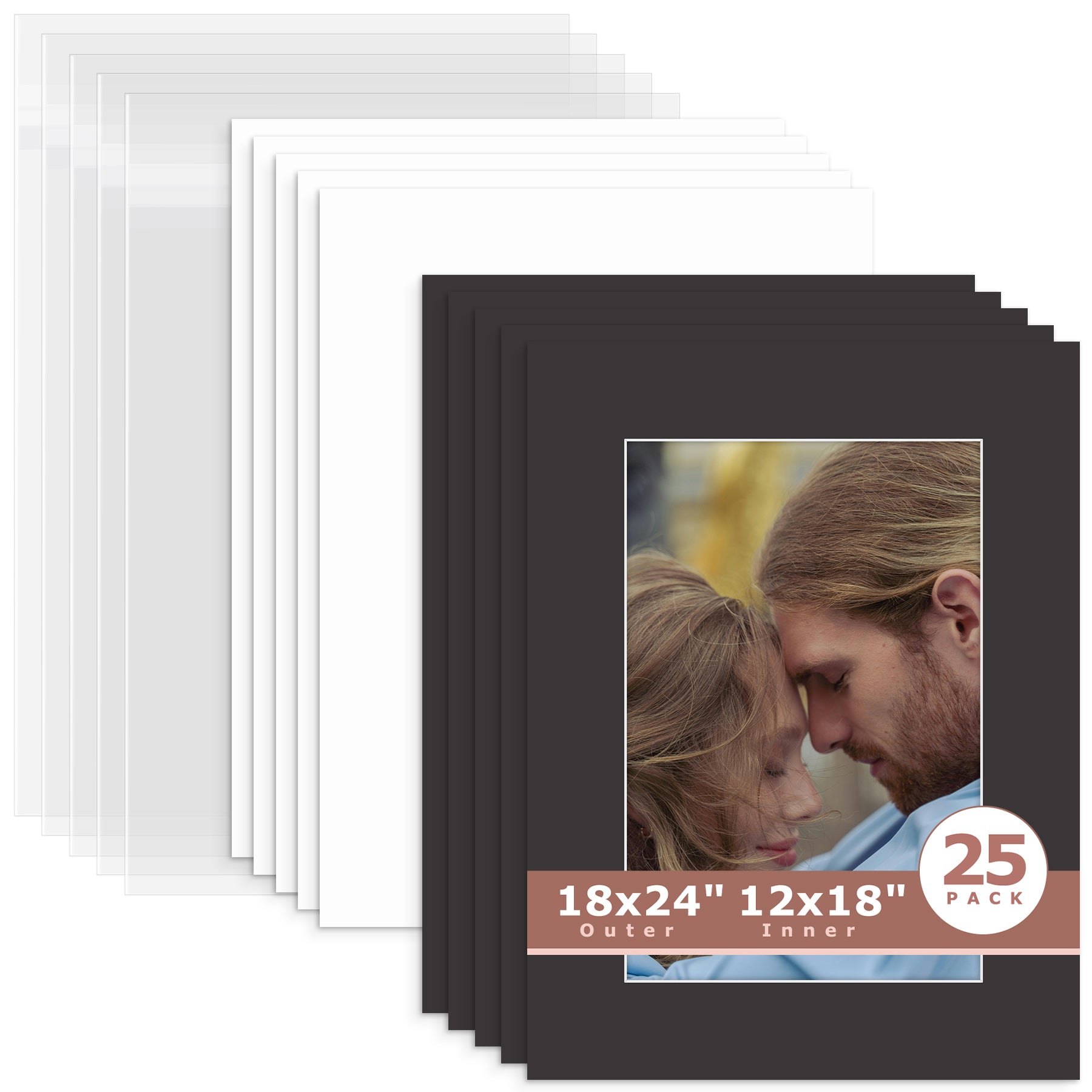 25 Pack 18x24 Whitecore Economy Pre-Cut Mat Board+ Backing + Bag 12x18 (11.5x17.5 exact opening) N142 Black