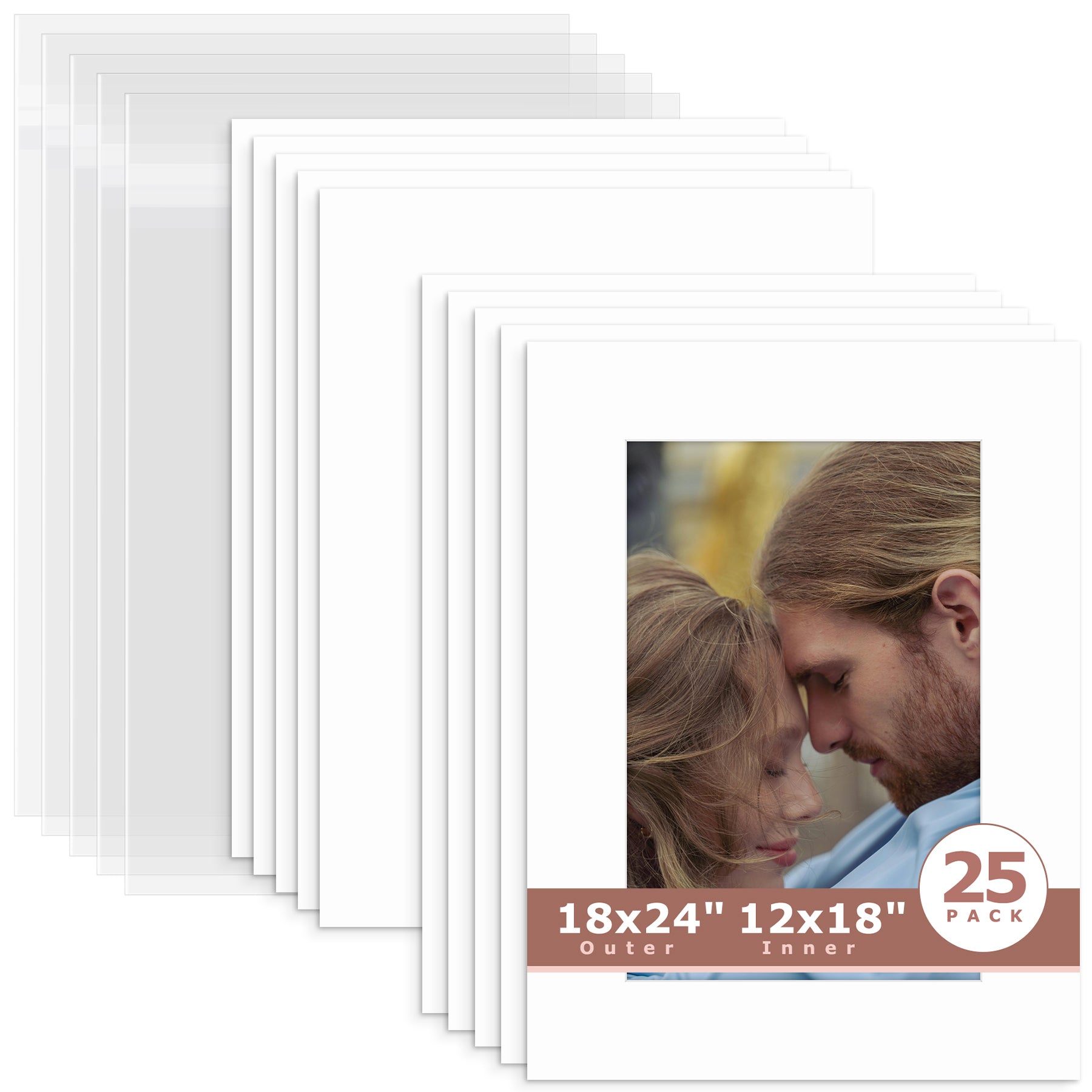 25 Pack 18x24 Whitecore Economy Pre-Cut Mat Board+ Backing + Bag 12x18 (11.5x17.5 exact opening) N501 White