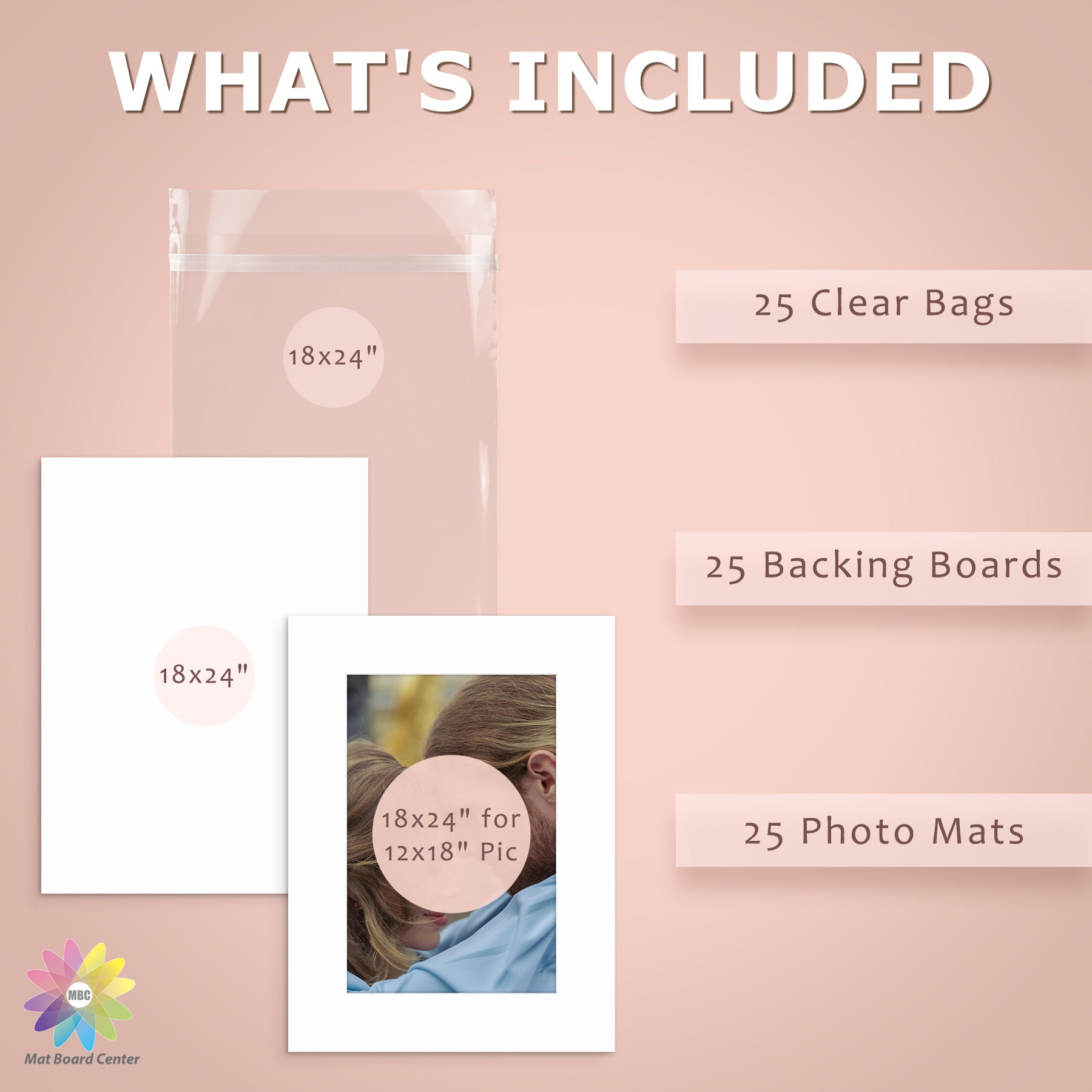 25 Pack 18x24 Whitecore Economy Pre-Cut Mat Board+ Backing + Bag