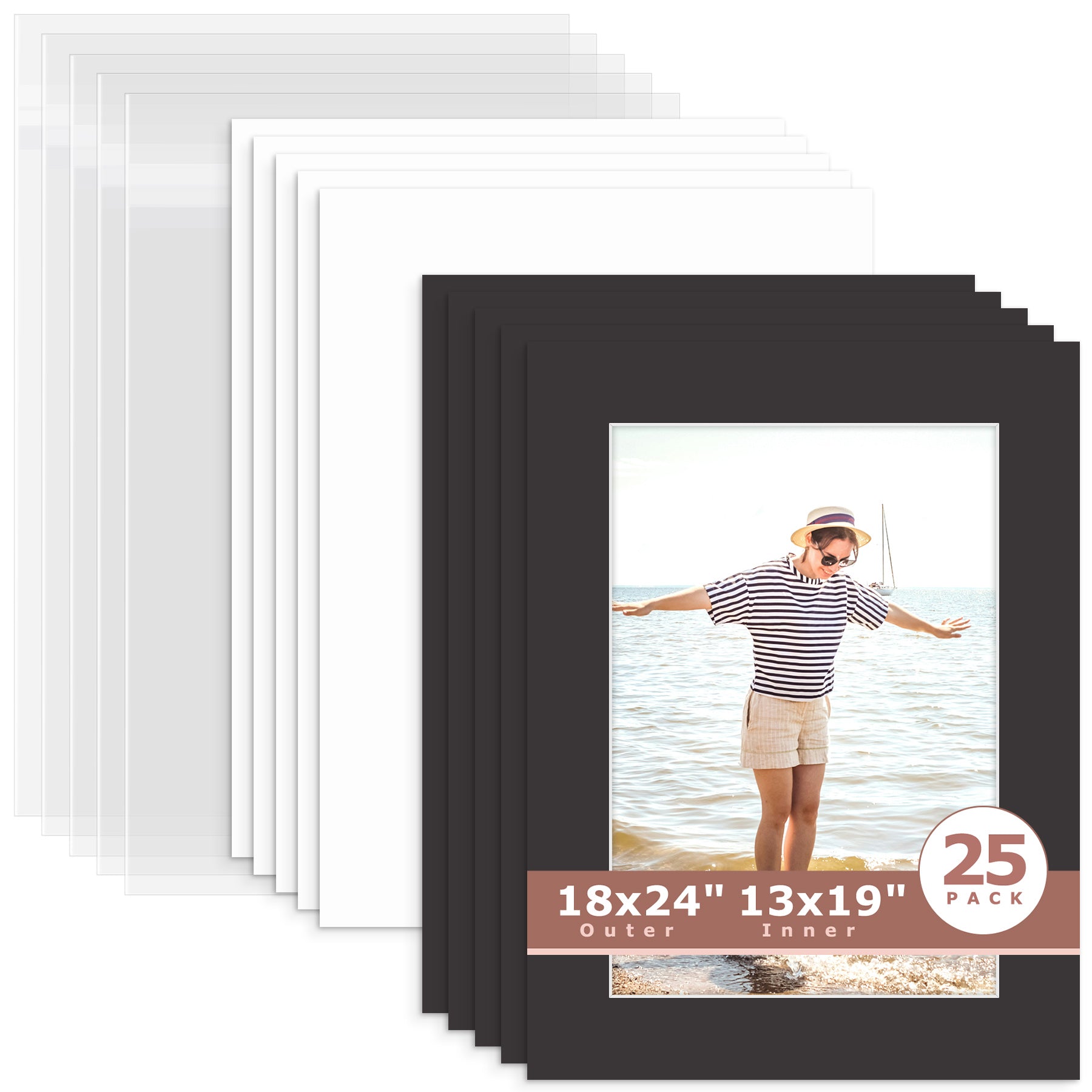 25 Pack 18x24 Whitecore Economy Pre-Cut Mat Board+ Backing + Bag 13x19 (12.5x18.5 exact opening) N142 Black
