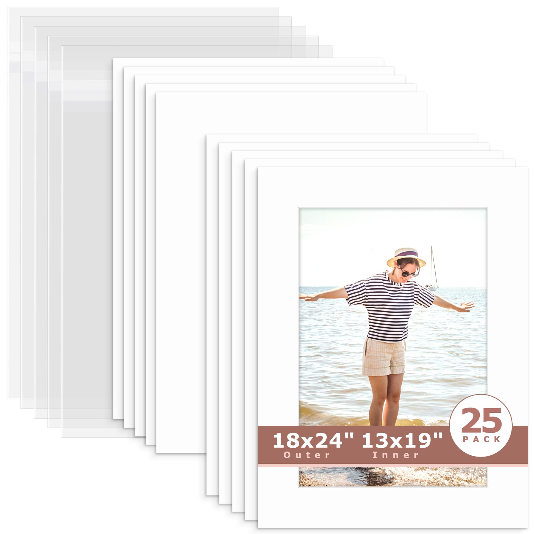 25 Pack 18x24 Whitecore Economy Pre-Cut Mat Board+ Backing + Bag 13x19 (12.5x18.5 exact opening) N501 White