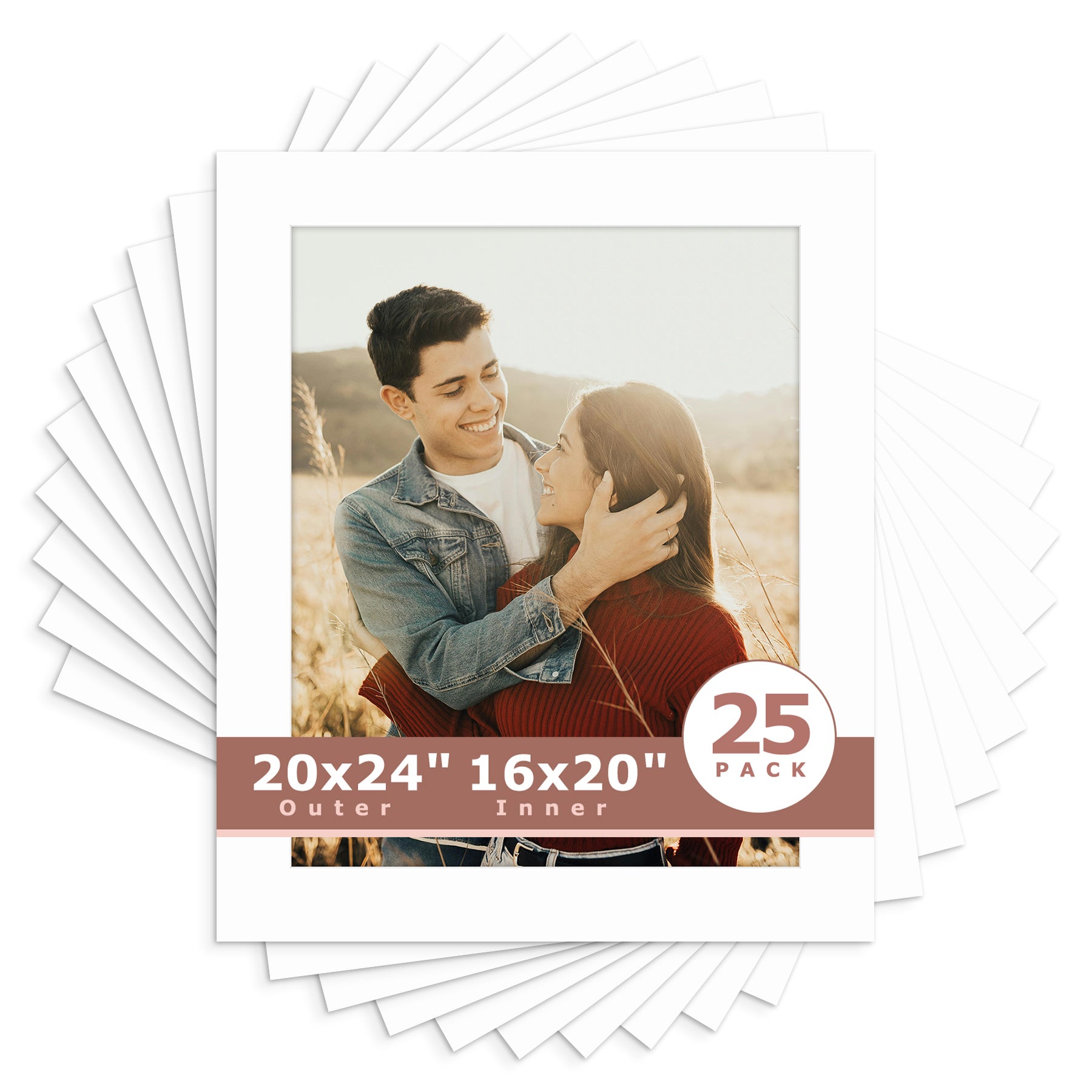 20x24 Whitecore Pre-Cut Mat Board for 16x20 Photo- Pack of 25