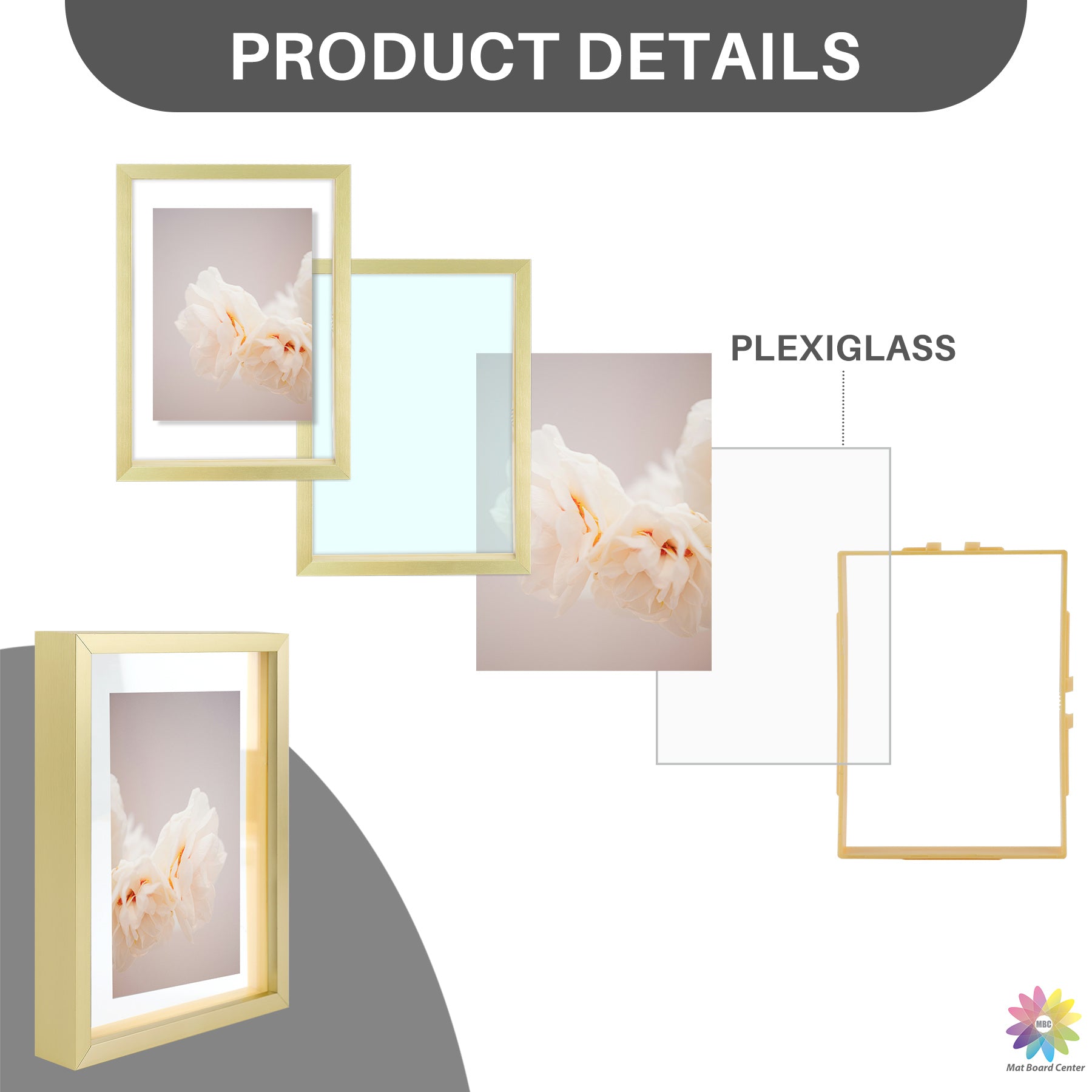 5x7 Floating Frame Displays Any Size Photo up to 5 by 7 (12 Pcs Per Box) Gold