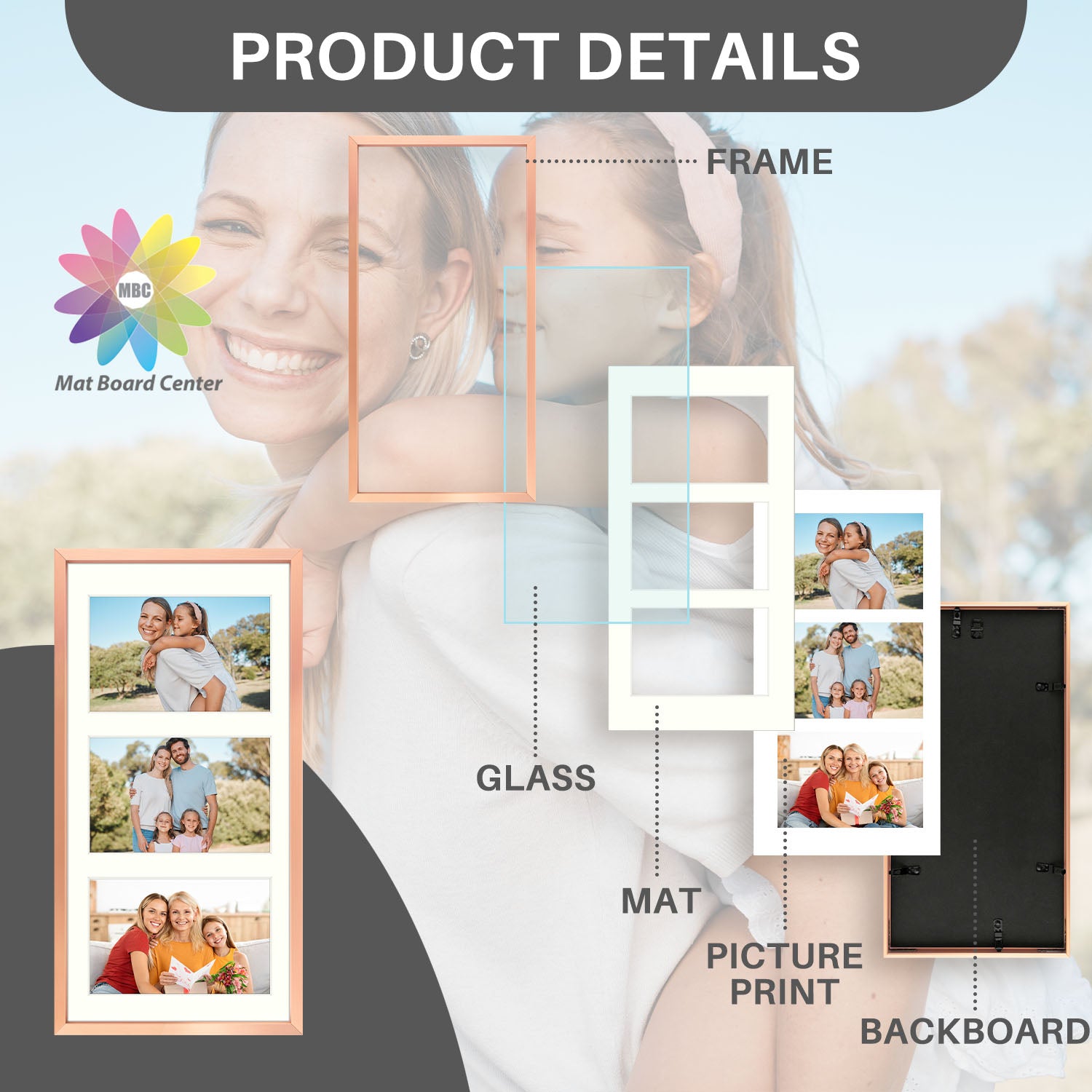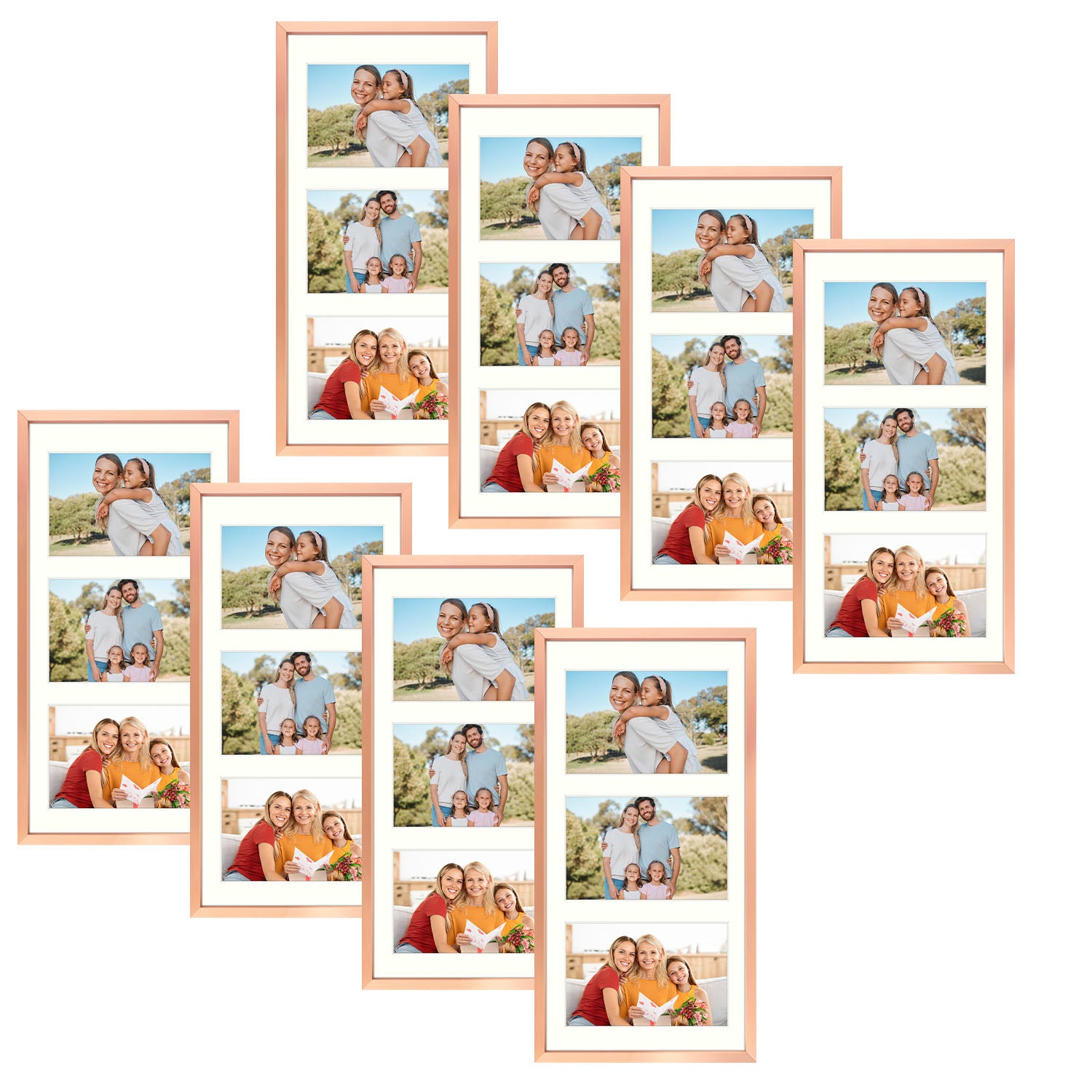 7x14 Aluminum Collage Picture Frame for Three 4x6 Photos 8 Pack Rose Gold
