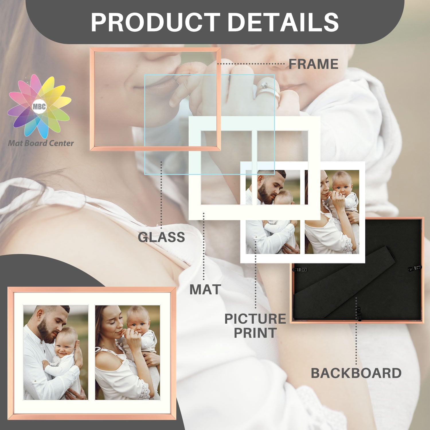 8.5x11 Aluminum Collage Picture Frame for Two 5x7 Photos (8 Pcs per Box) Rose Gold