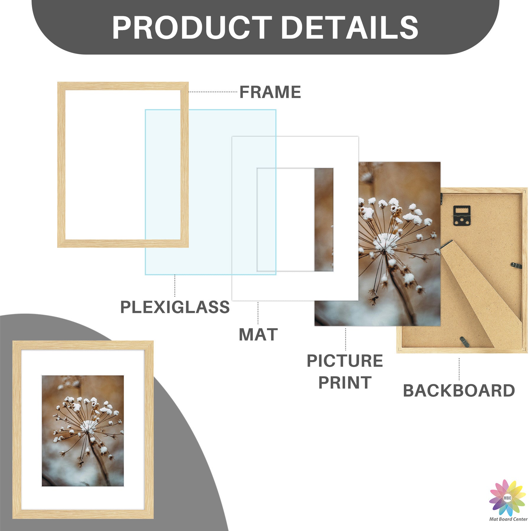 8.5x11 Picture Frame For 6x8 Picture With White Mat and Plexiglass Beige (8 Pcs per Box)