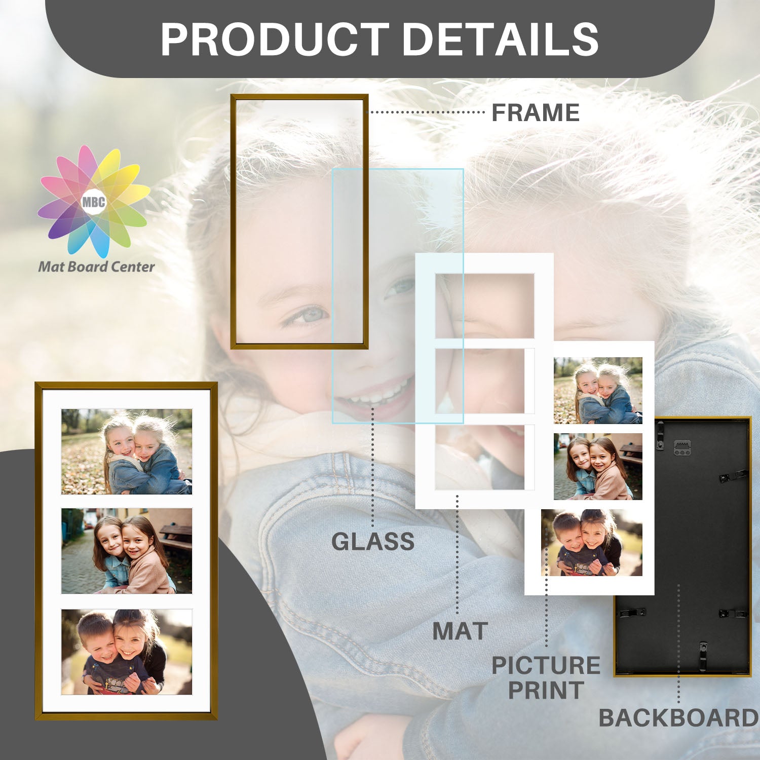 8.5x16.3 Aluminum Collage Picture Frame for Three 5x7 Photos
