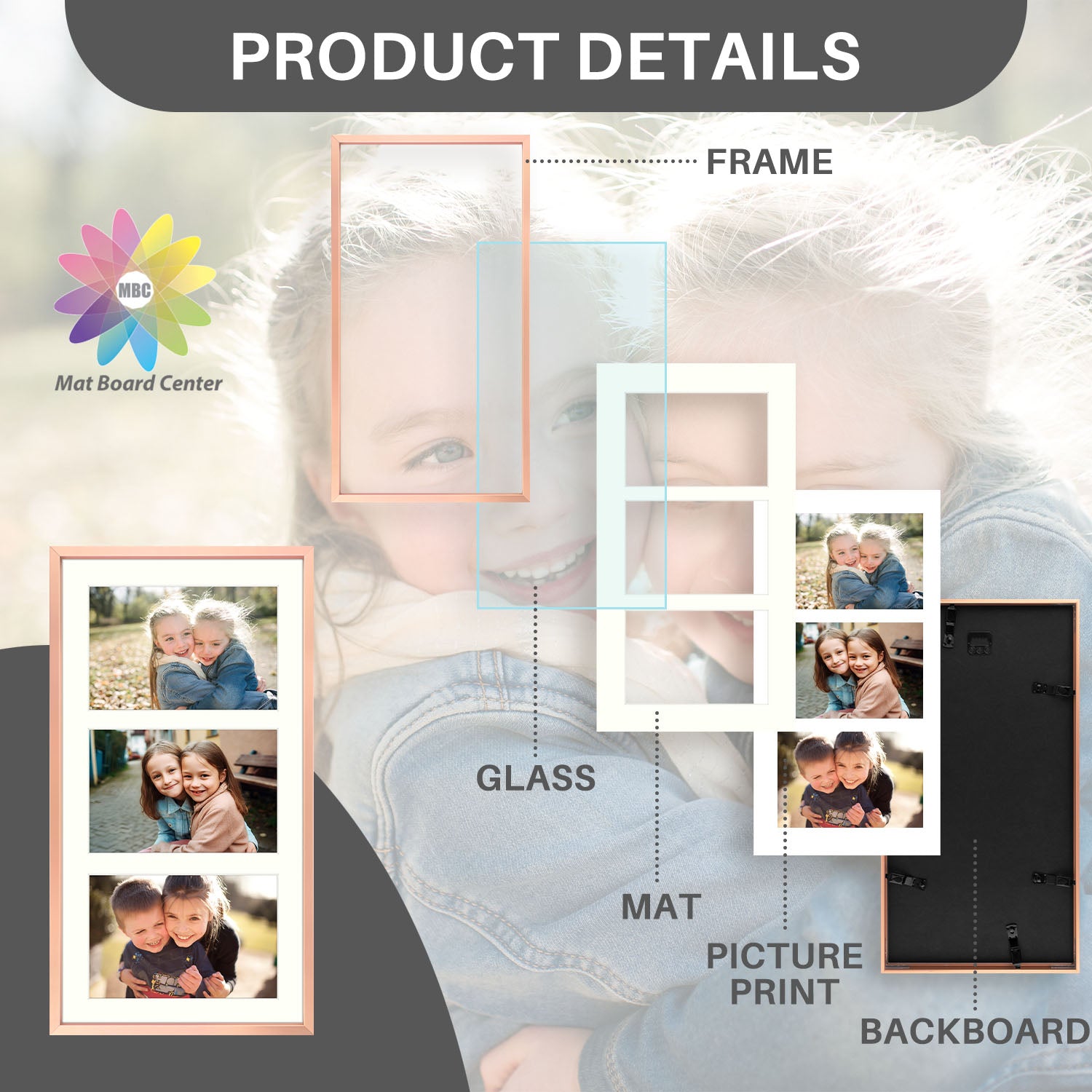 8.5x16.3 Aluminum Collage Picture Frame for Three 5x7 Photos 8 Pack Rose Gold