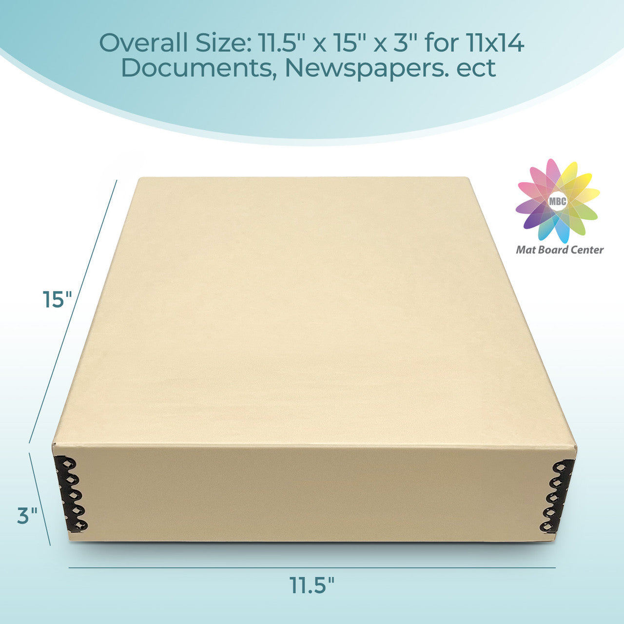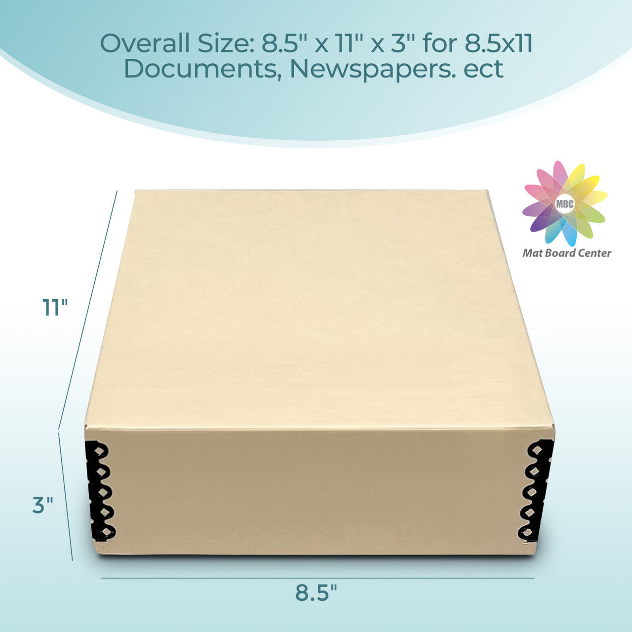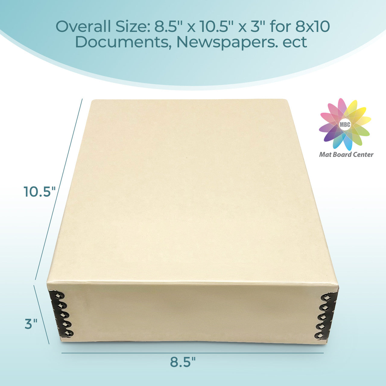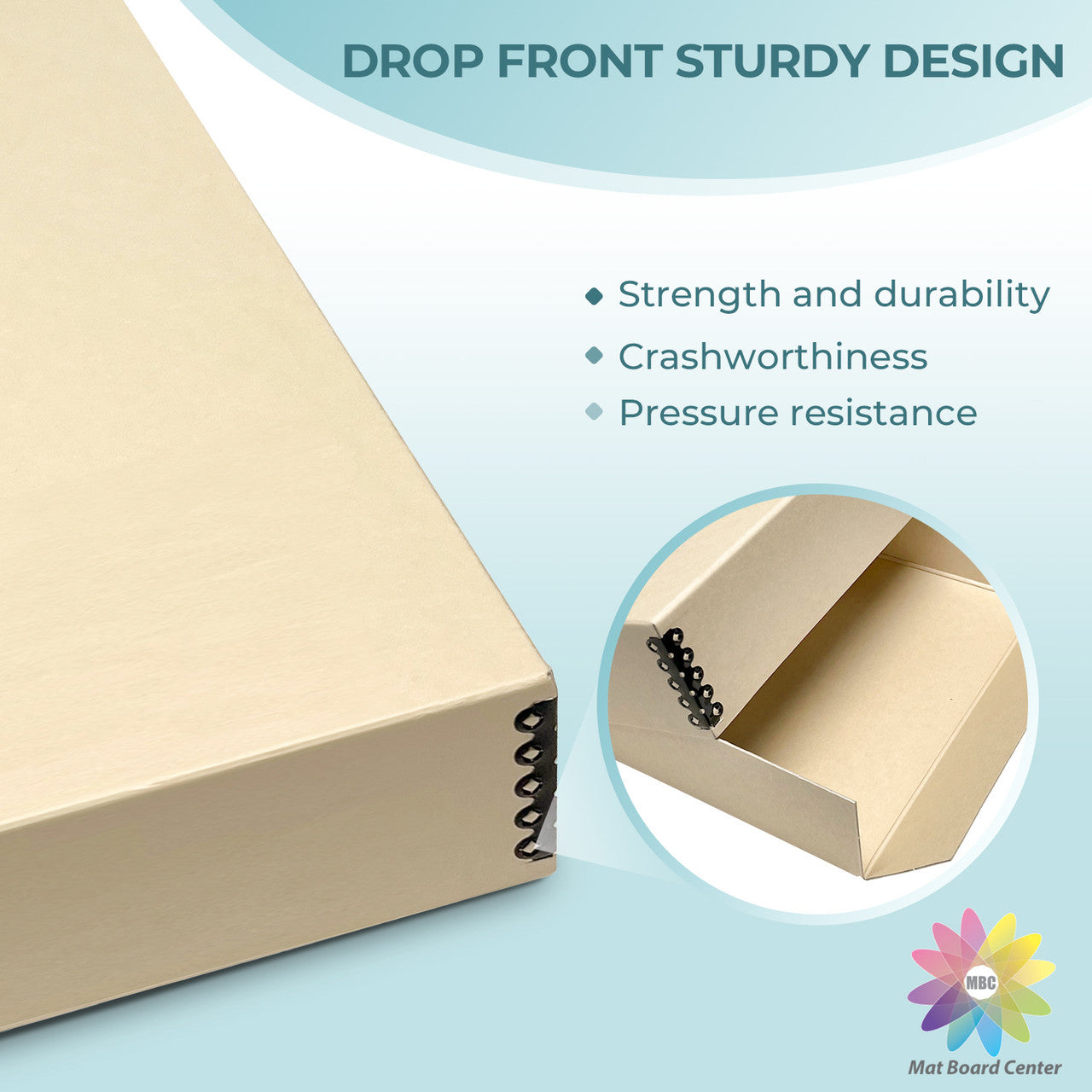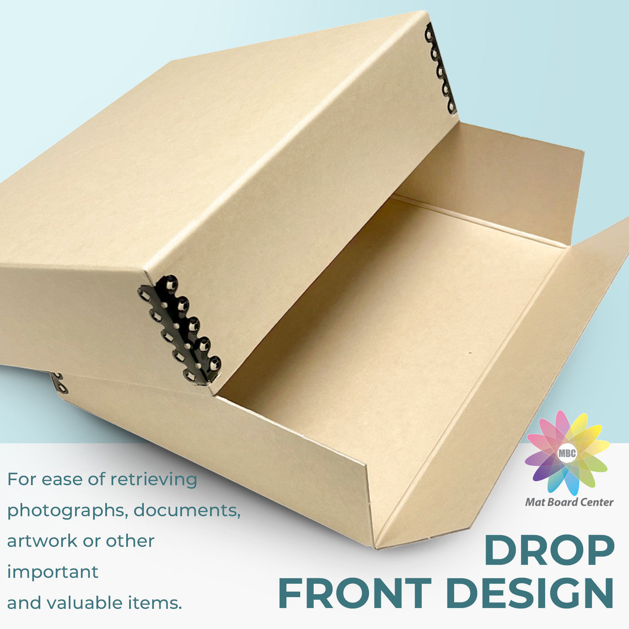 DROP FRONT STURDY DESIGN: Made with metal edge construction on the corners, adding great durability and strength. The lid does come off and it has a drop-front design, meaning it's super easy for you to slide your prints etc in and out. This box is acid-free, lignin-free, and made with 60 point board. The corners are metal-edged for more strength and durability.