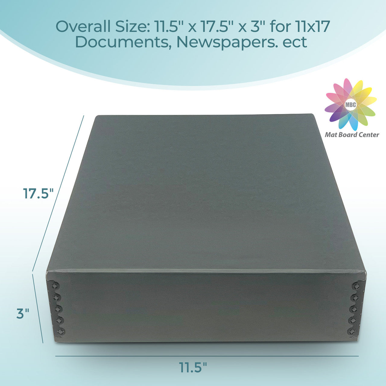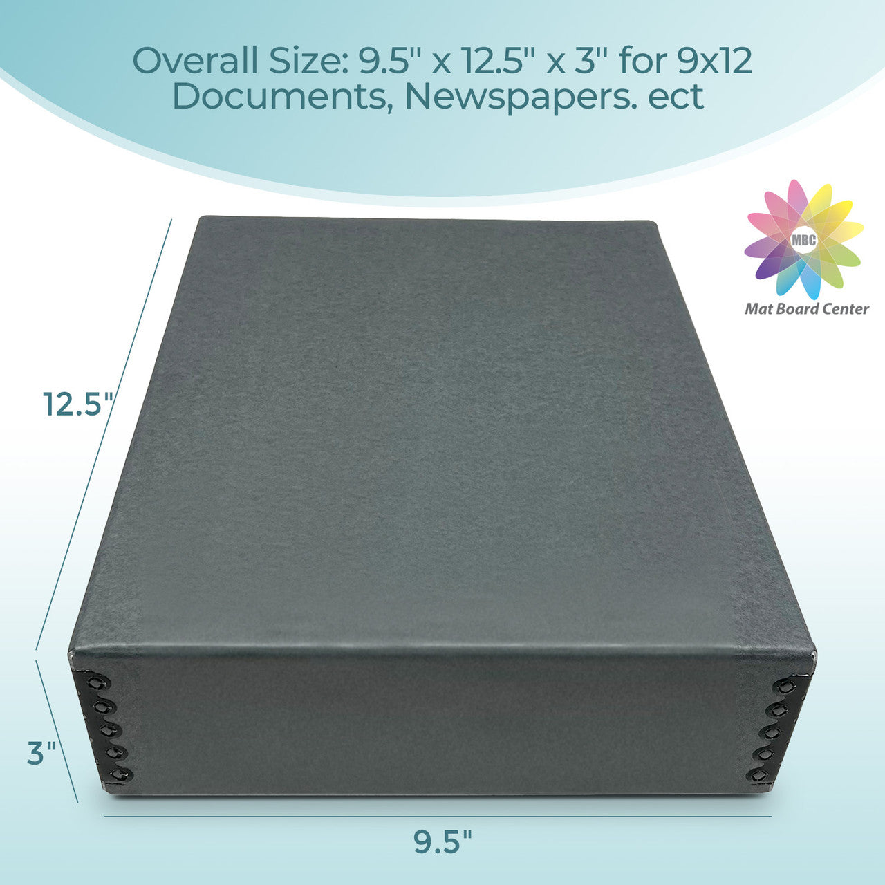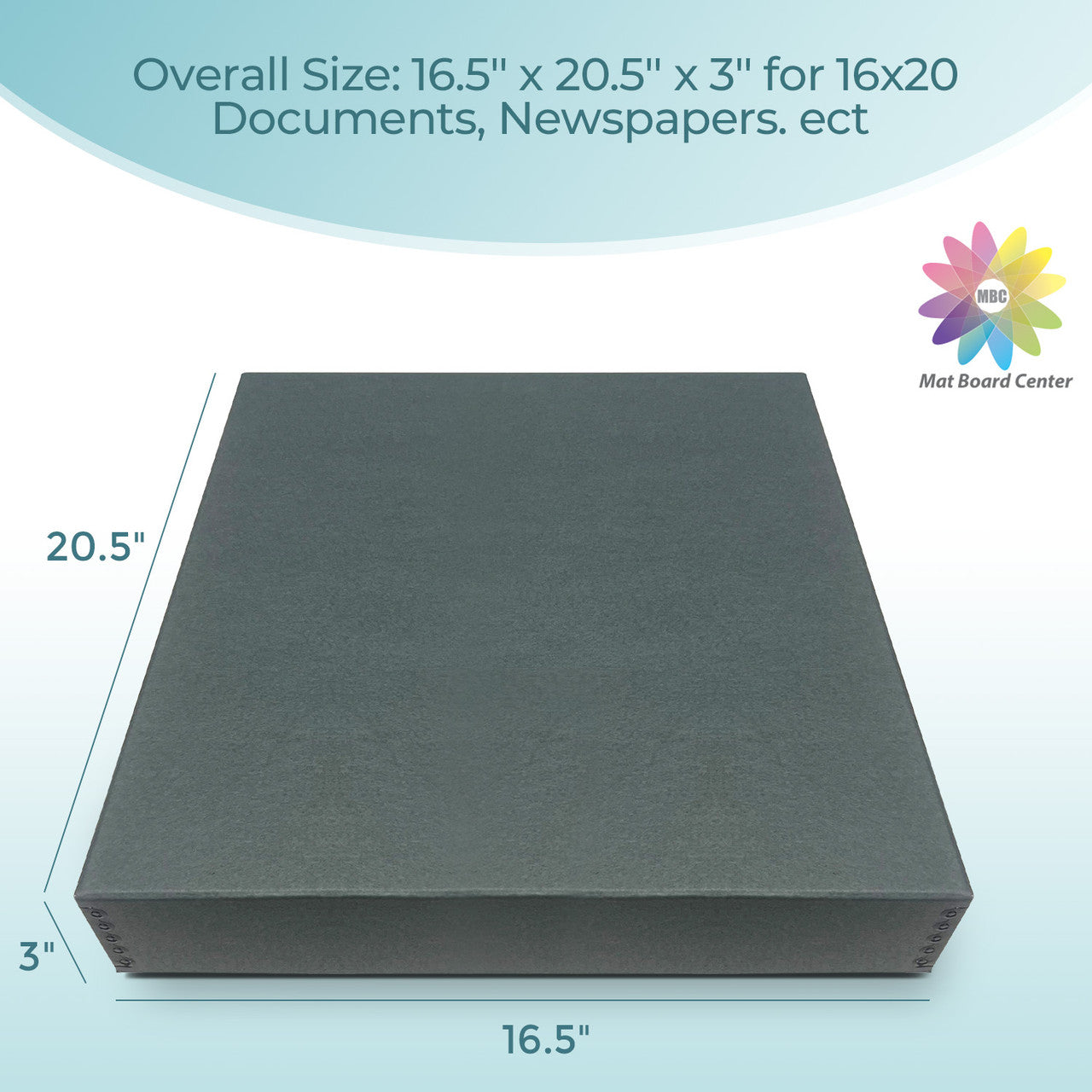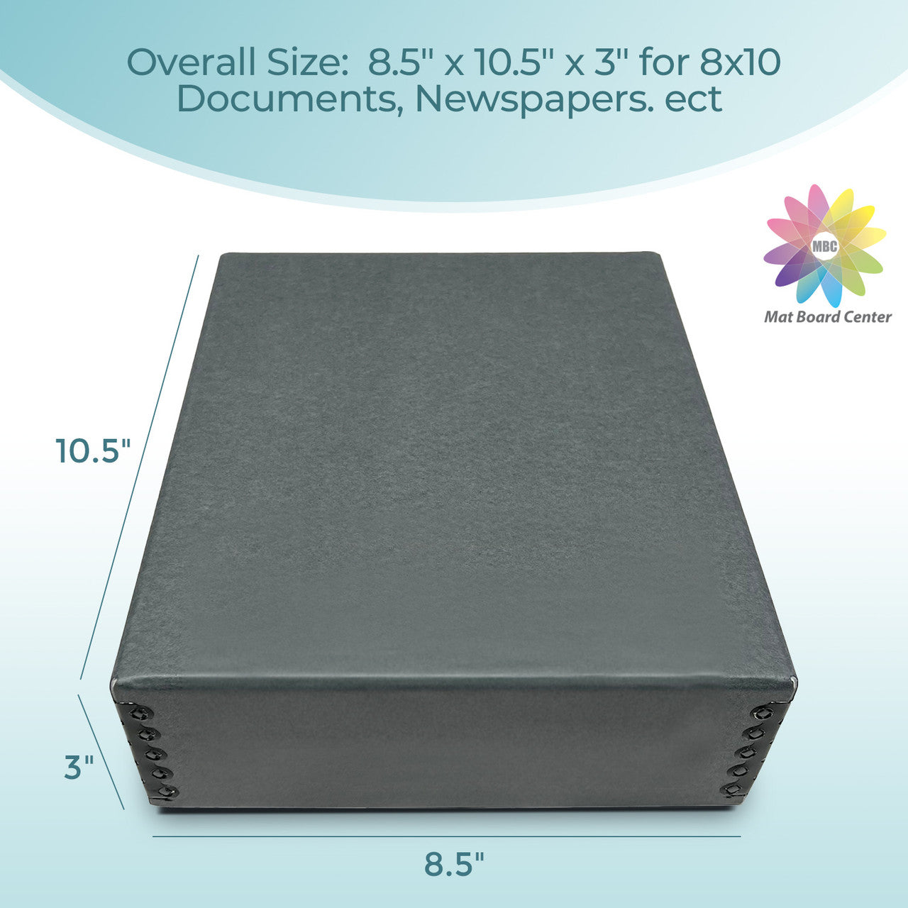 Protect your most valued photographs, documents and artwork with a museum quality archival, acid free box. Metal corners for stacking strength. Acid-free board is buffered with calcium carbonate to help neutralize airborne pollutants. Drop front for easy access. 3" depth.