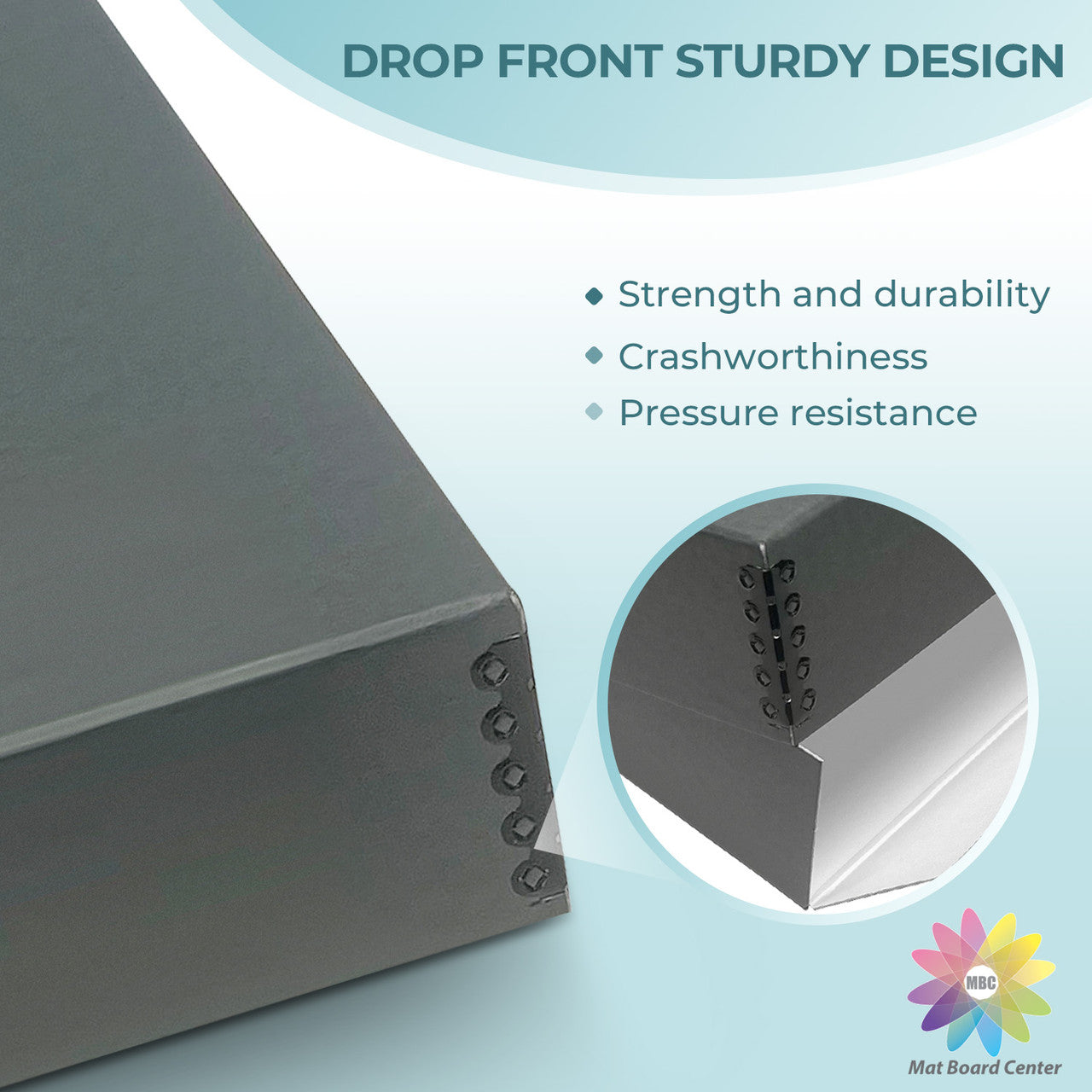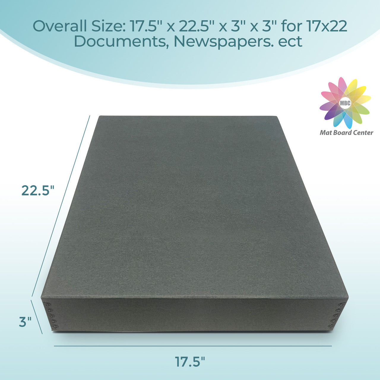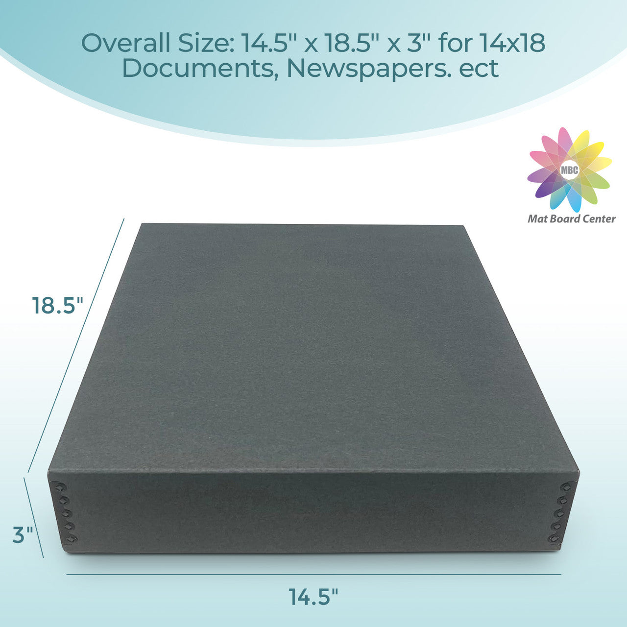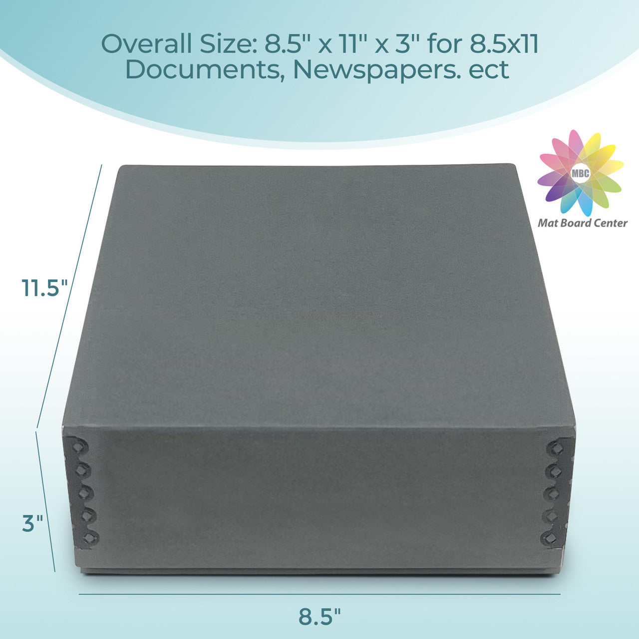 Protect your most valued photographs, documents and artwork with a museum quality archival, acid free box. Metal corners for stacking strength. Acid-free board is buffered with calcium carbonate to help neutralize airborne pollutants. Drop front for easy access. 3" depth.
