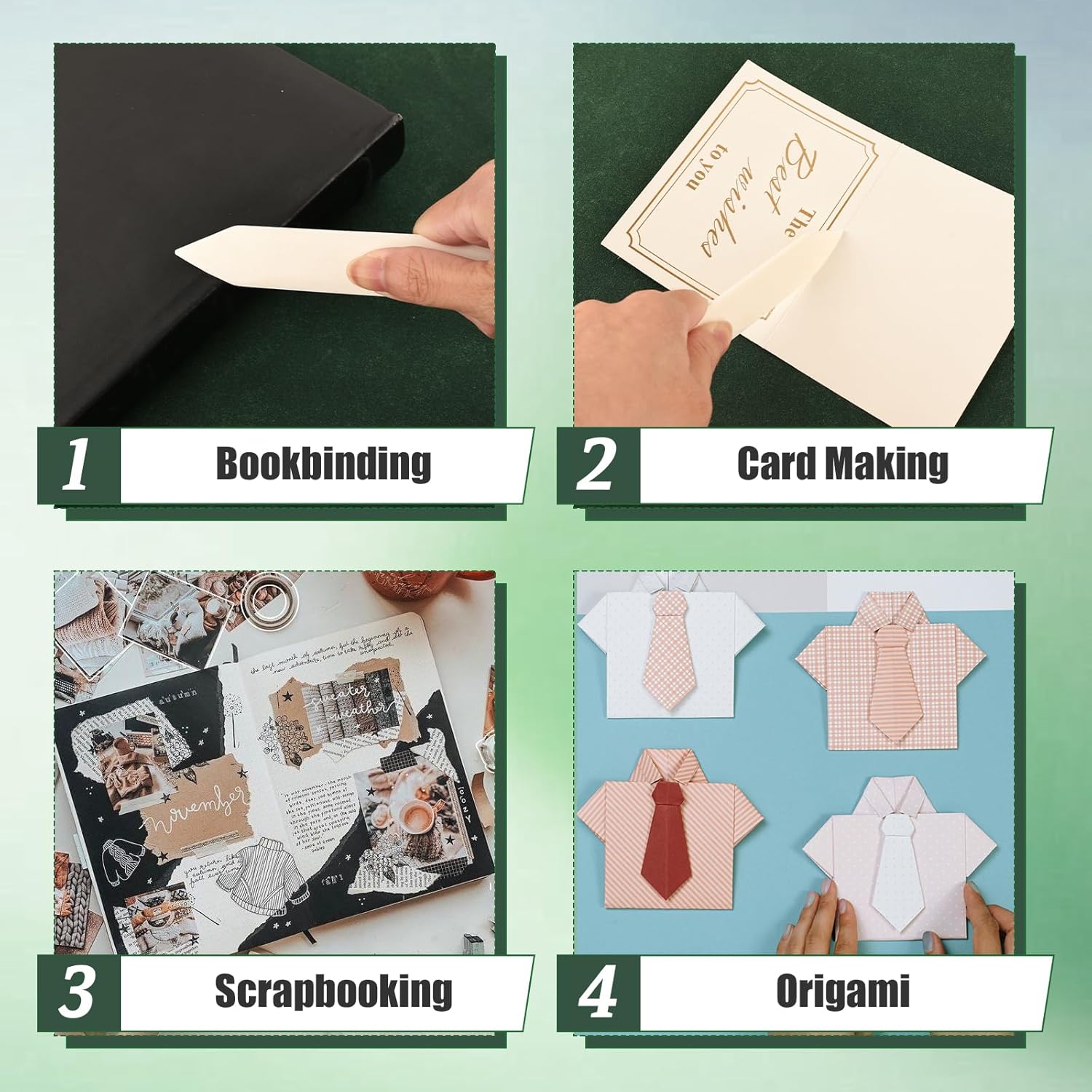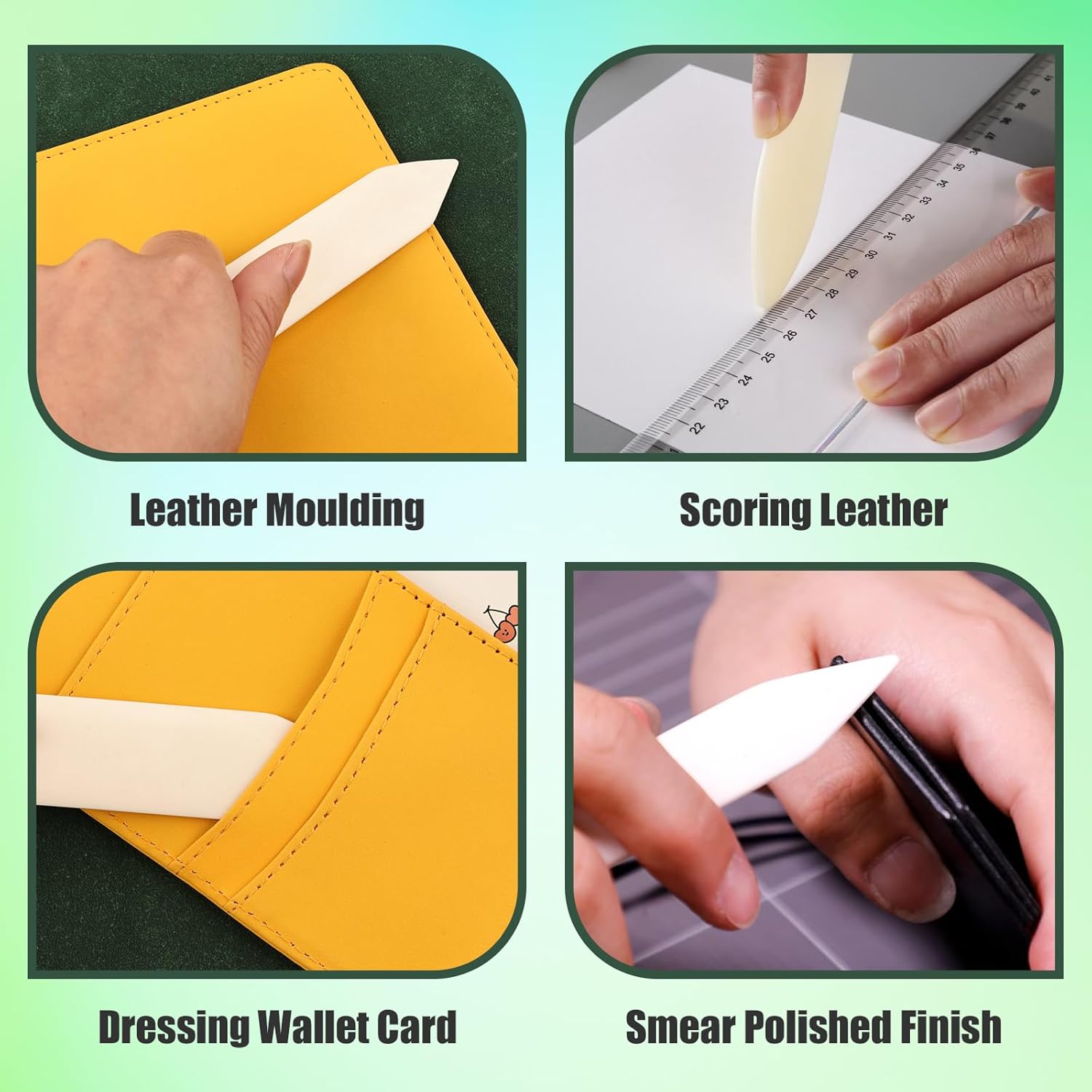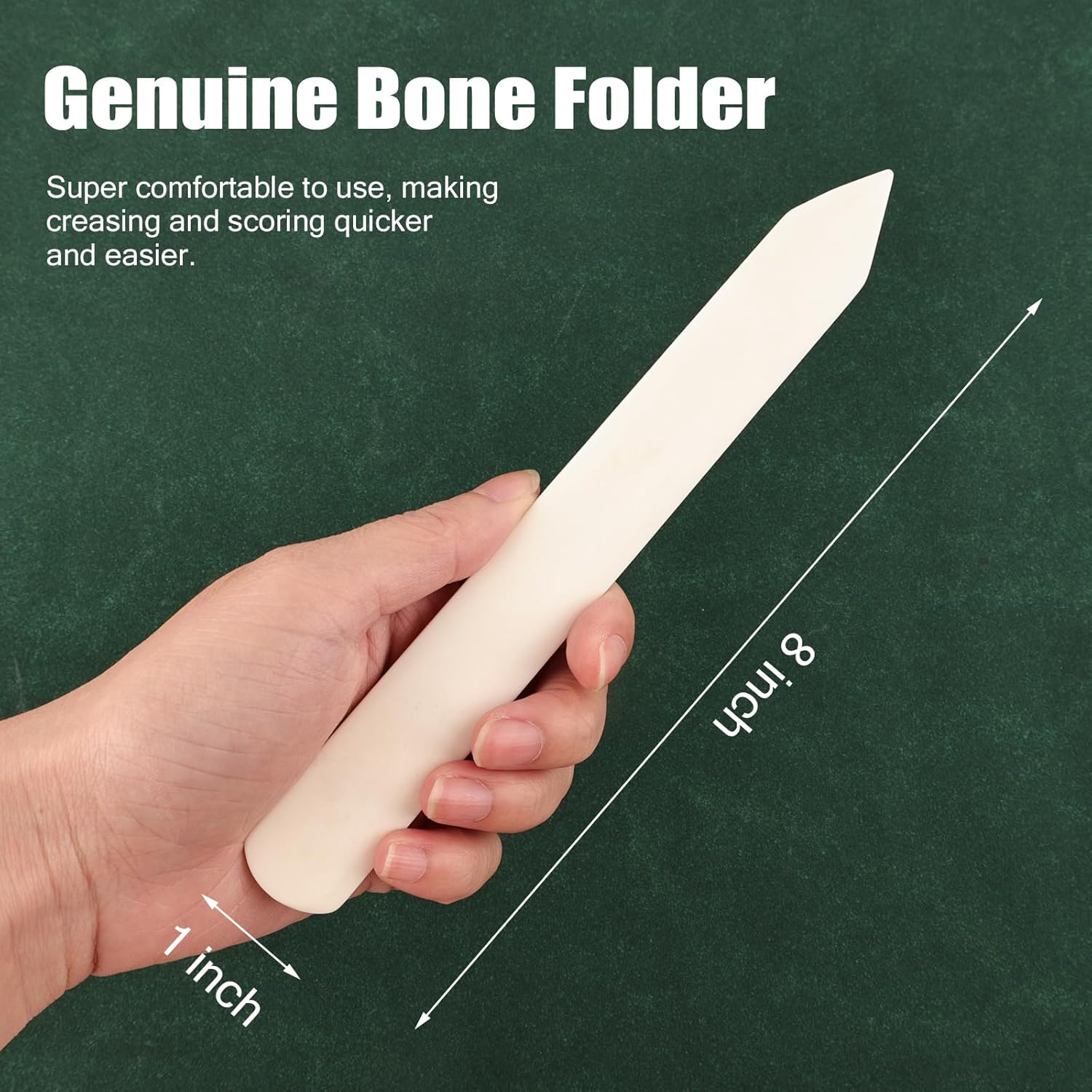 This selection of genuine bone folders offers a variety of different design elements that increase the versatility of the tool while providing additional comfort to the user. Perfect Use For: Folding, Creasing, Scoring Leather, Scrapbooking.