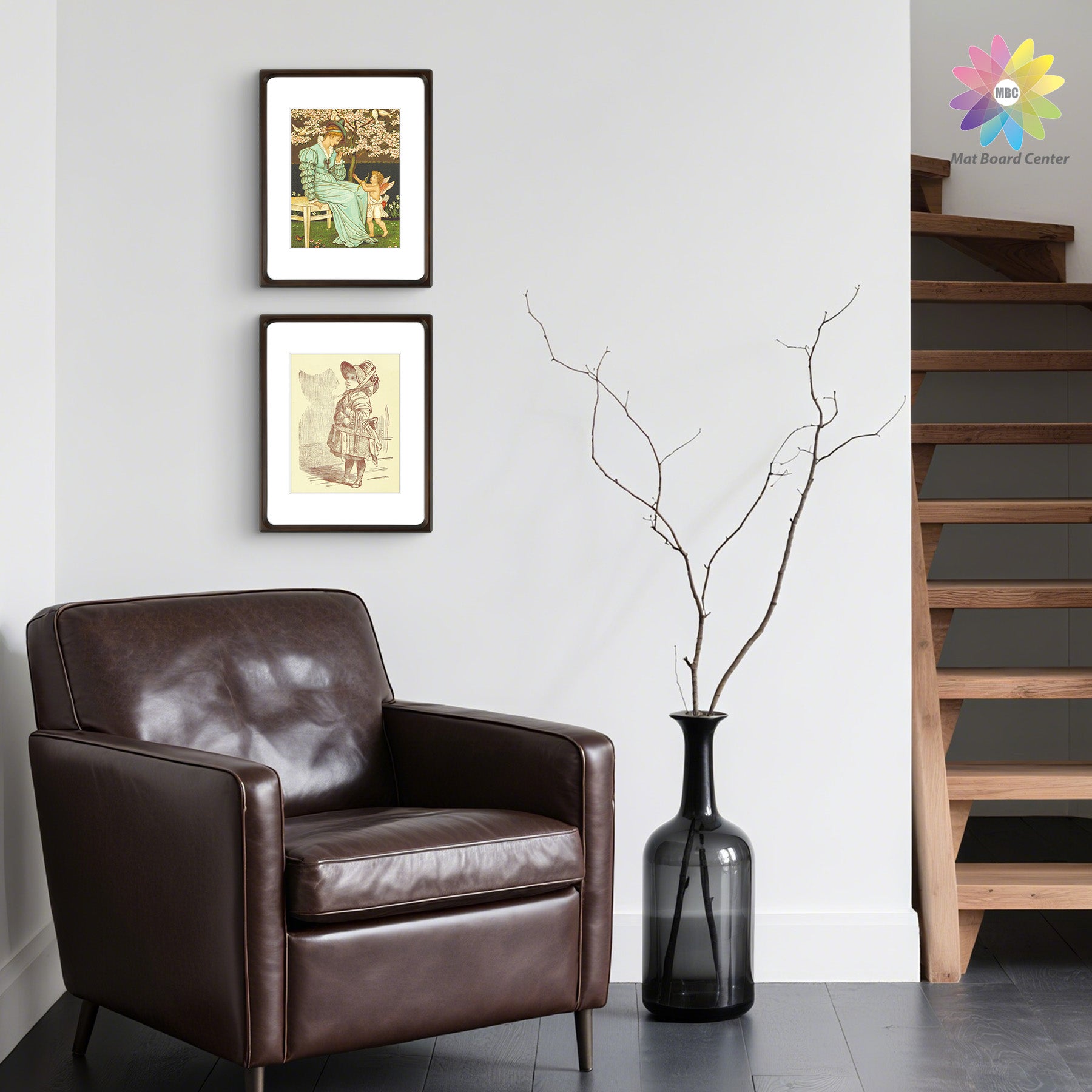 Rounded Corner 11x14 Wood Frame For 8x10 Photos With White Mat and Real Glass Brown (6 Pcs per Box)